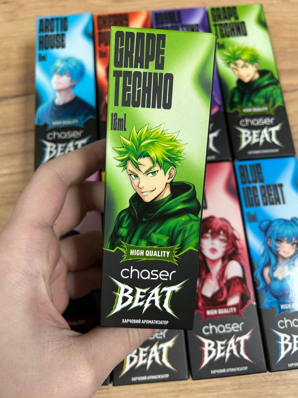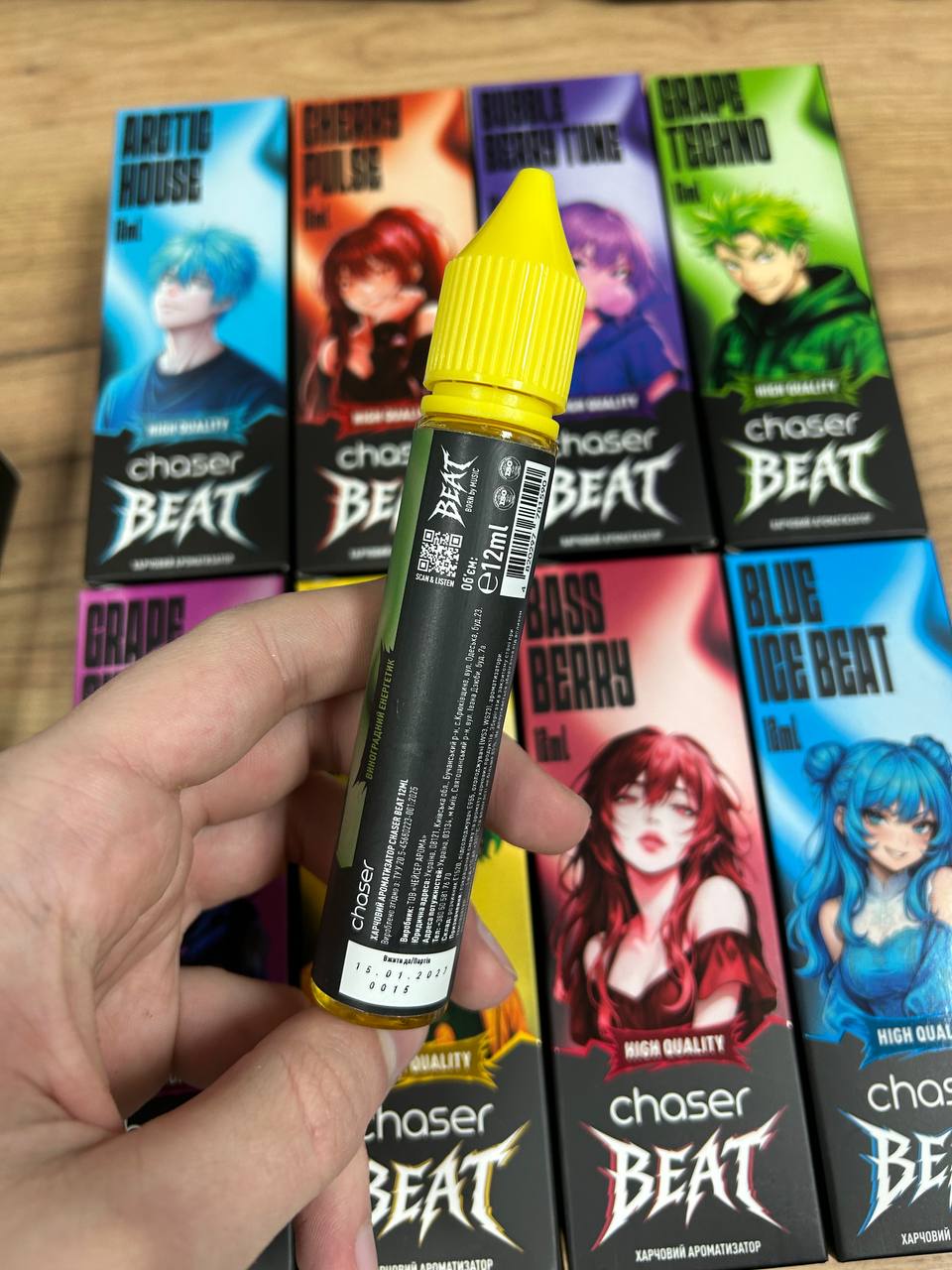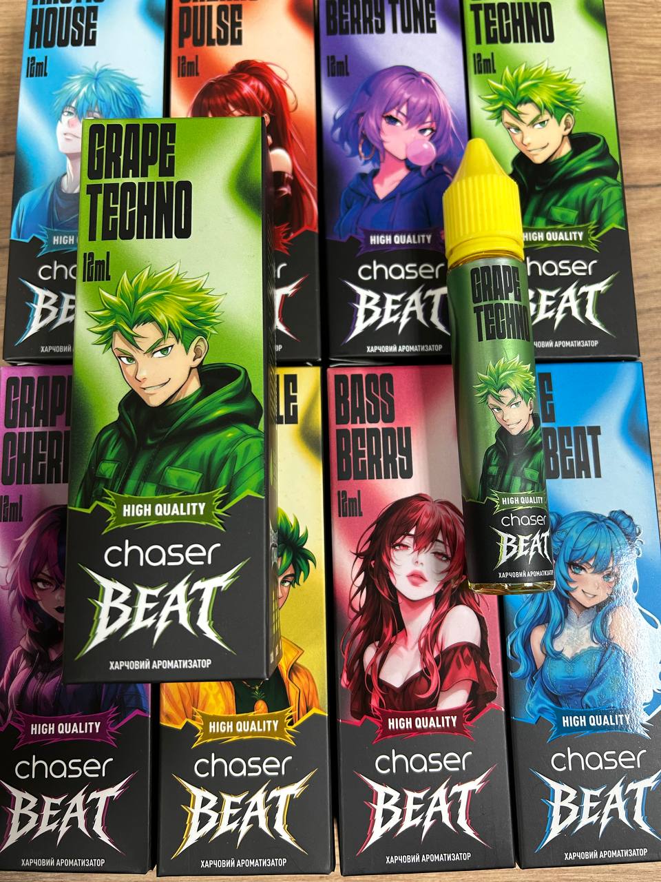 Ананас (PINEAPPLE BASS), Виноград Вишня (GRAPE CHERRY), Виноград Енергетик (GRAPE TECHNO), Мята (ARCTIC HOUSE), Смородина малина (BASS BERRY), Черничное Мороженное (BLUE ICE BEAT)
